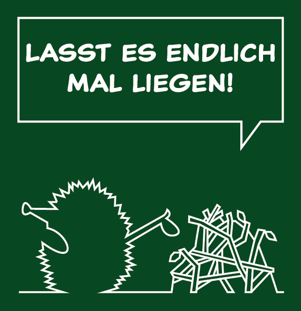 Wenn heruntergefallenes Laub unerwünscht ist, sollte dieses entweder in der Hecke oder in einem Ecken des Gartens untergebracht werden. Laub ist für Igel ein willkommenes Bau- und Dichtungsmaterial und dient auch vielen anderen Wildtieren.