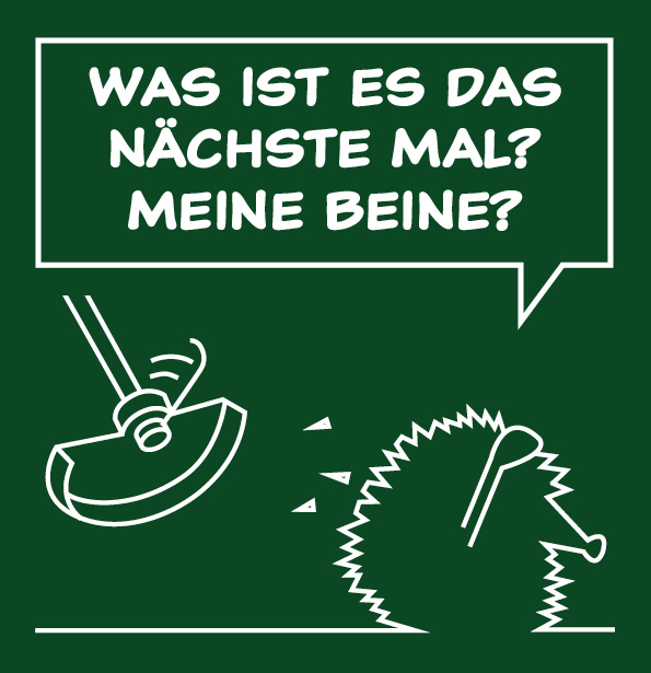 Weil die Igel bei Gefahr nicht flüchten, sondern sich einkugeln, ist der sorglose Einsatz von Fadenmähern und Motorsensen auch ganz direkt für den Tod von unzähligen Igeln verantwortlich.