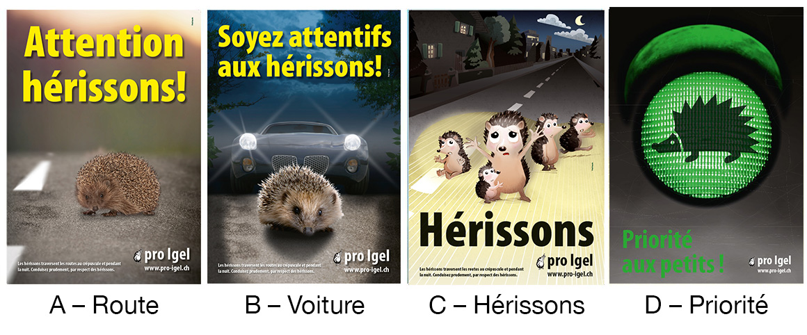 Nos affiches de rue sont visibles dans toute la Suisse. Elles sont installées par les communes et nous en sommes très reconnaissants. Mais même la commune la plus favorable aux hérissons ne dispose que d'un nombre limité de supports d'affichage coûteux et ne peut pas installer un panneau d'avertissement dans chaque quartier d'habitation, même si cela y serait judicieux. C'est pourquoi nous souhaitons élargir la portée de notre campagne d'affichage et proposer les motifs populaires également aux particuliers.